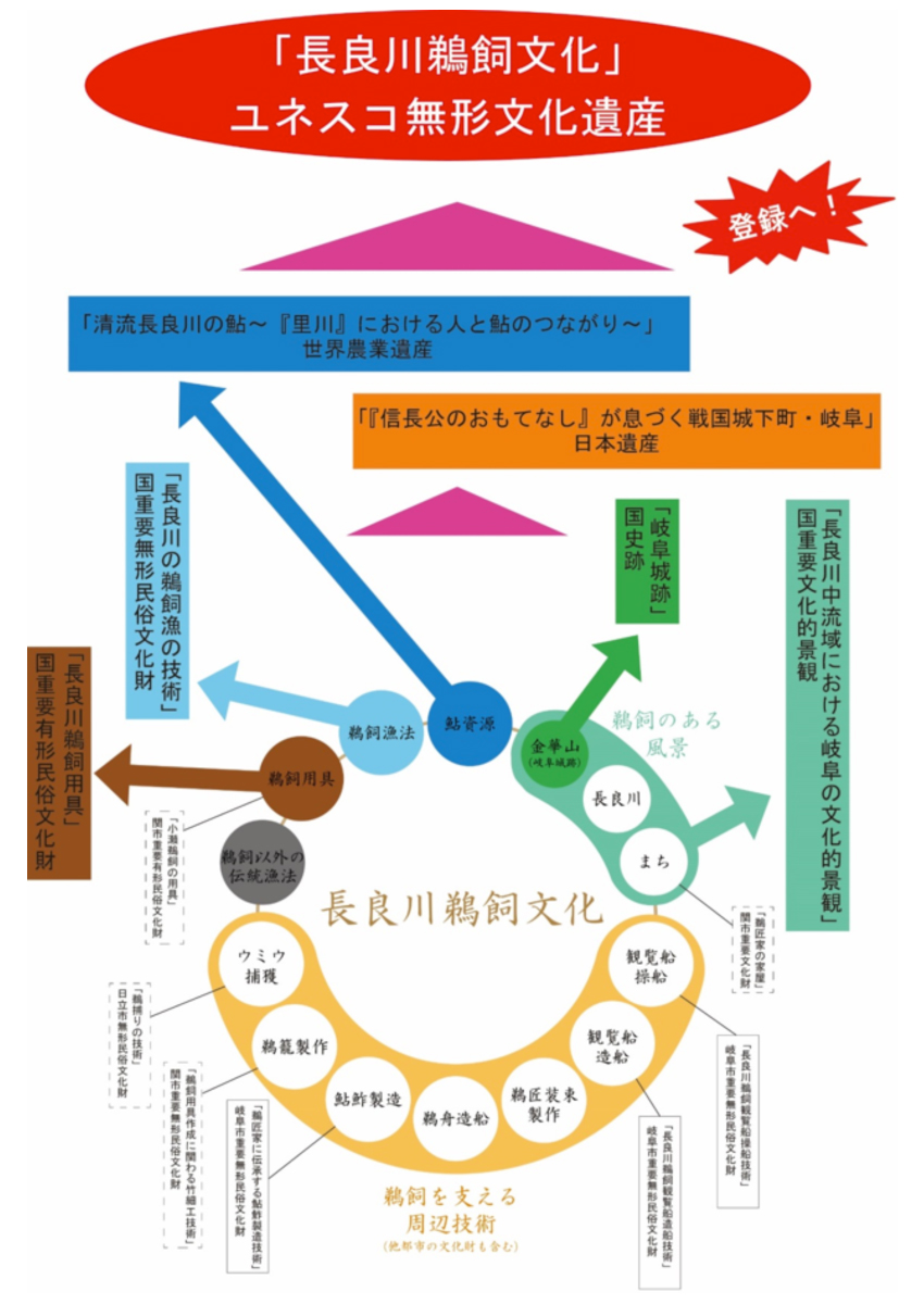 長良川の鵜飼漁は、鵜匠家による鵜の飼育に関する技術、鵜に装着する首結いの加減や手縄のさばき方など、鵜匠が漁において鵜を扱う技術、鵜匠や船頭による船の操船や管理に関する技術などが一体となり伝承されてきたものです。