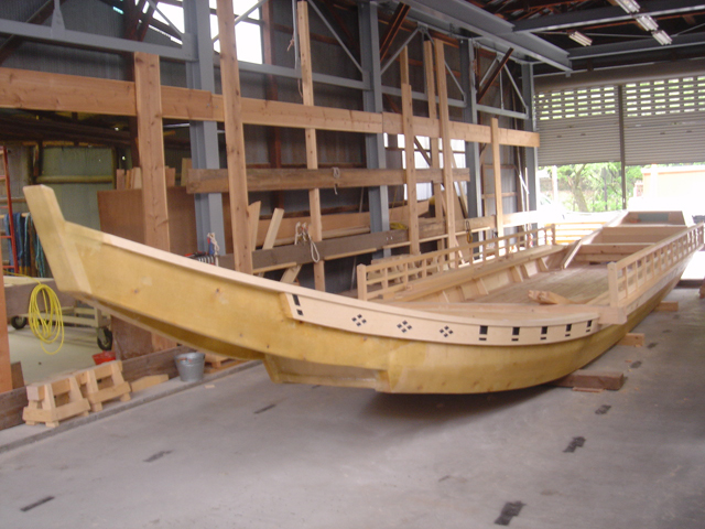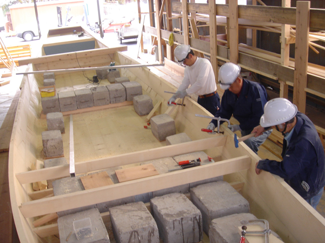 観覧船には設計図面は無く、経験豊かな船大工の匠の技で建造されています。観覧船1隻の完成には約半年間かかります。また、造船所内には、鵜匠が実際に使用していた鵜舟も展示されています。