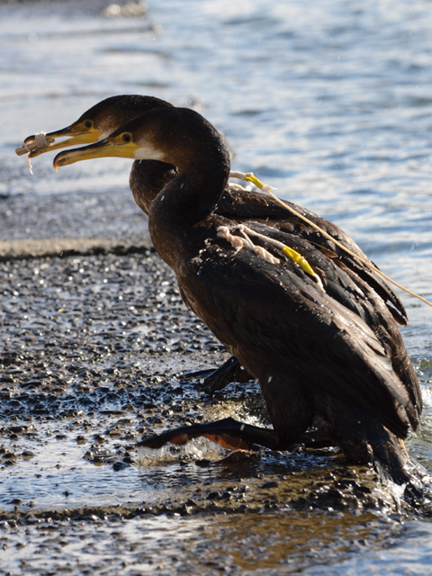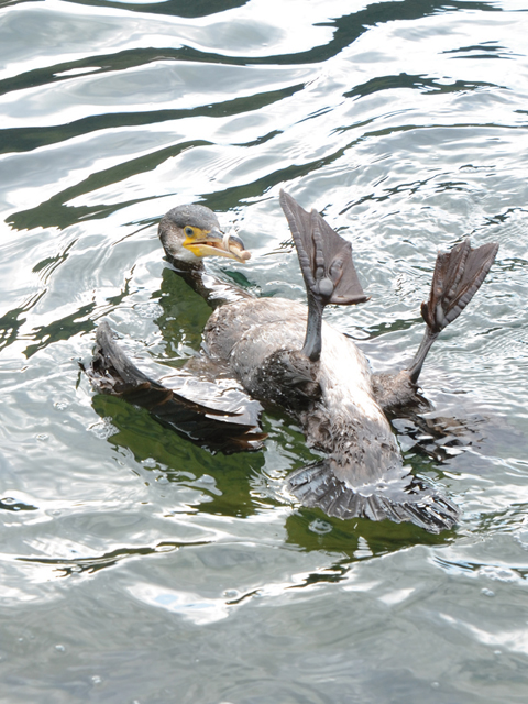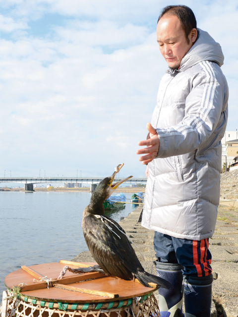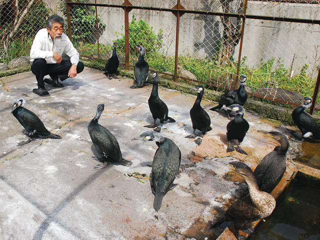 その後、様子を見て鳥屋やプールで他の鵜と一緒にし、ハシガケも外していきます。鵜飼シーズンが始まると、時期を見計らって漁に連れて行き、潜ったり魚を捕まえることを周りの鵜から覚えさせます。